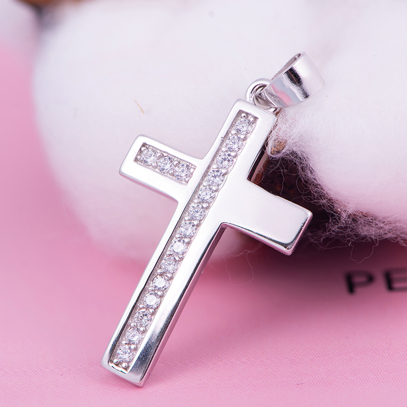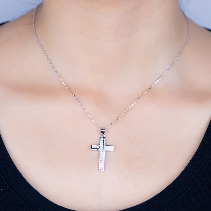 Show your dedication with this beautiful classic diamond cross pendant. It has an eternity cross and sparkling round diamonds. Crafted in shimmering sterling silver, this style is perfect for everyday wear or to complement your formal attire. The cross pendant measures 26mm high, 17mm wide and weighs 1.9g.