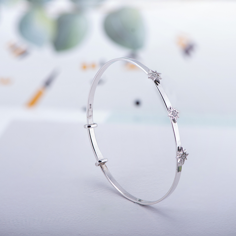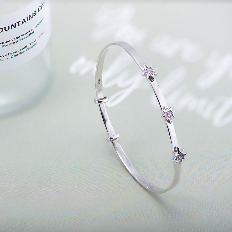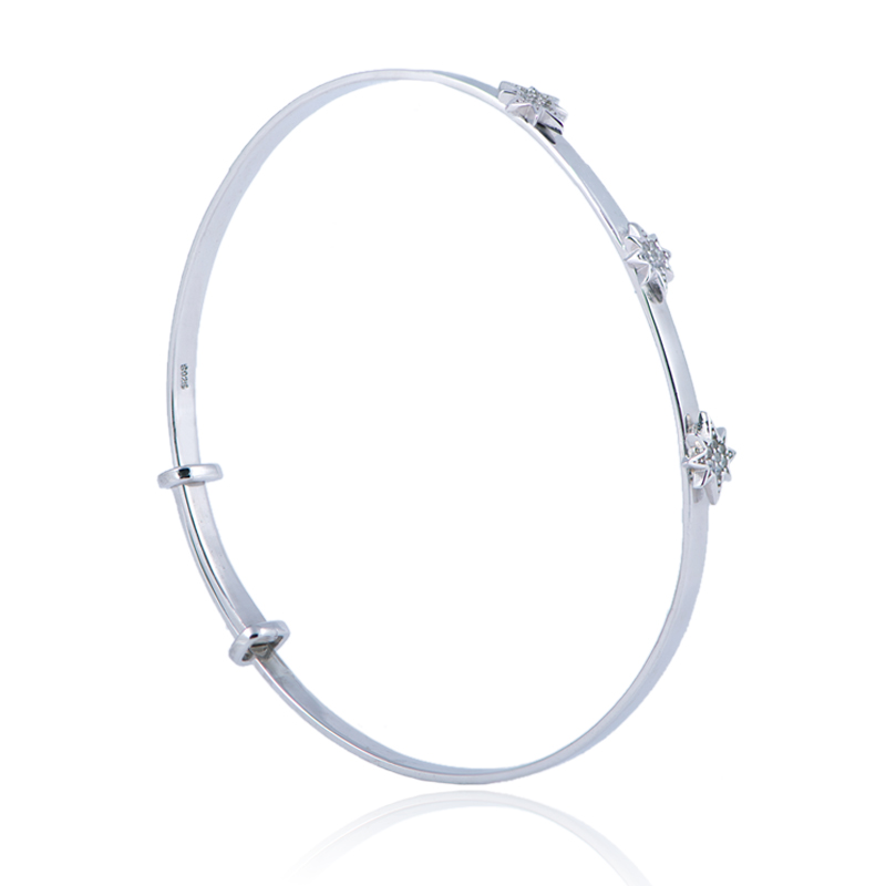 X&H SILVER’s sterling silver side bracelet features 3 eight-pointed stars, each set with 7 cubic zirconias, allowing you to shine and be the center of attention anywhere. The bracelet with sliding clasp is easy to wear alone or with other styles from X&H SILVER.