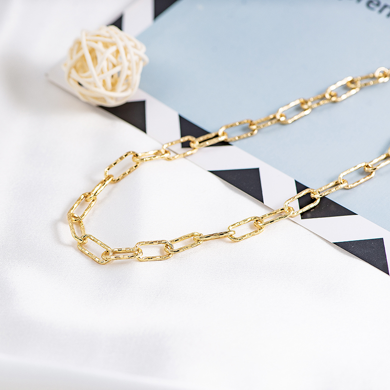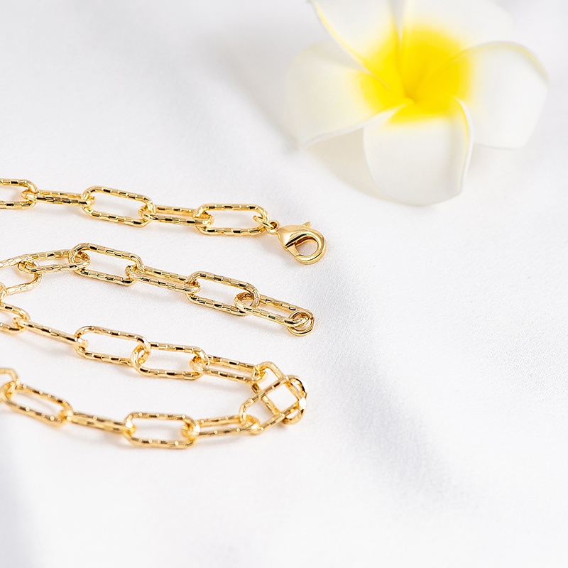 Discover new trends with this delicate rectangular chain paperclip necklace. A great addition to everyday or special occasion wear. Made of high quality bronze with thick links in 18k gold plated, lobster claw clasp.