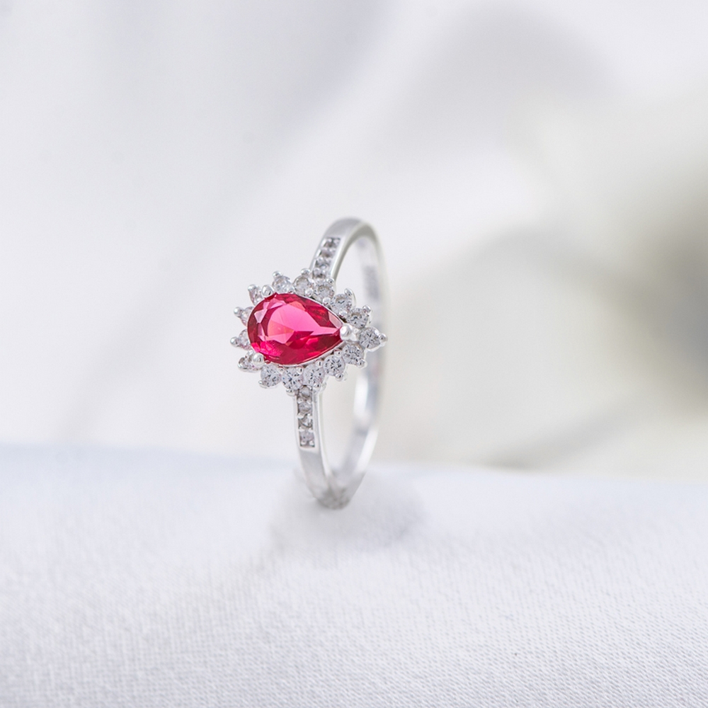 | [Product Name] | Halo Pear Cut Zircon Engagement Ring |