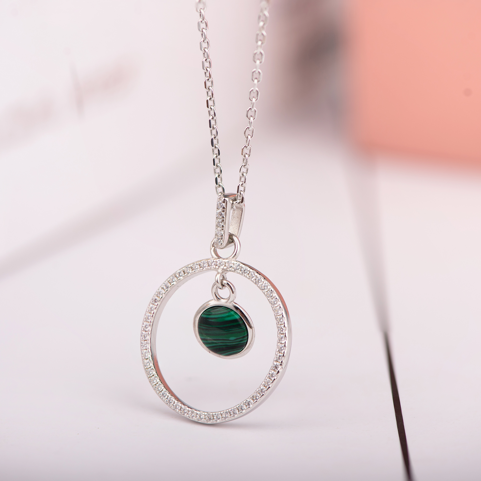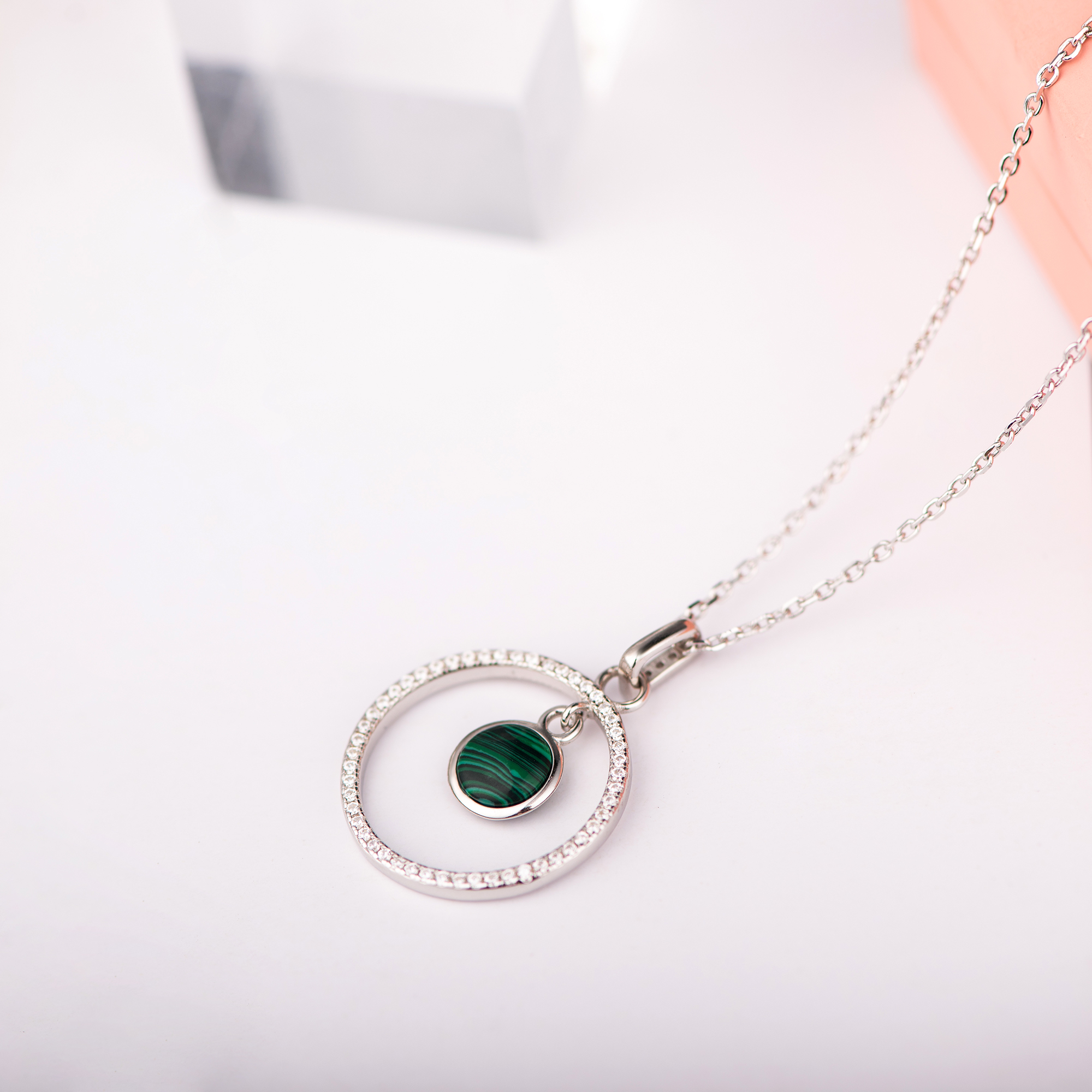 Product Name Sterling Silver Green Cz Cubic Zircon Circle Pendant Necklace