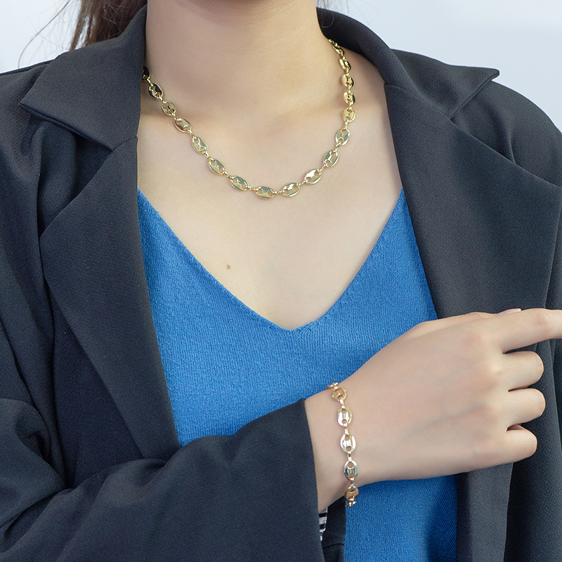 | [Product Name] | Hip Hop Classic Gold Pig Nose Bracelet 7.5 inches |